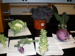 Brassica oleracea cultivars star in an artificial selection lab exercise. Clockwise from left: broccoli, cauliflower, decorative kale, Lacinato kale, red cabbage, Brussels sprouts, kohlrabi