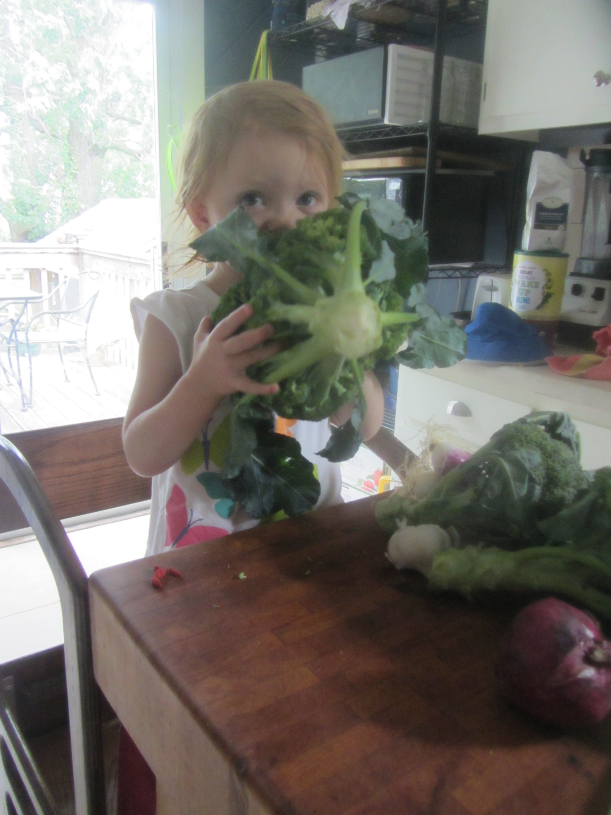 I recently watched a fluttering female cabbage butterfly presumably happily lay half a dozen eggs on my kale in the time it took me to read The Very Hungry Caterpillar to my toddler within view of the garden (we have that book memorized, so I can watch the garden and “read” at the same time). I plucked those leaves and scraped the eggs off before the caterpillars had a chance to hatch. I certainly haven’t been so quick with much of the rest of the garden crucifers. I wish I could find out more about the glucosinolate effects of that herbivory. Maybe we’ll try growing some Beneforté seeds next year. I’ll think of my mother when I harvest and wash the broccoli, only to inevitably find to my horror, as she did, that caterpillars hiding in the broccoli jump ship and float in the water in the sink. And I’ll toast Sicily when we get over our horror and drown that superpowered broccoli in some variant of classic Italian bagna cauda sauce. Chef friend of the blog Michelle Fuerst’s take on a simple version of the wondrous stuff is below.