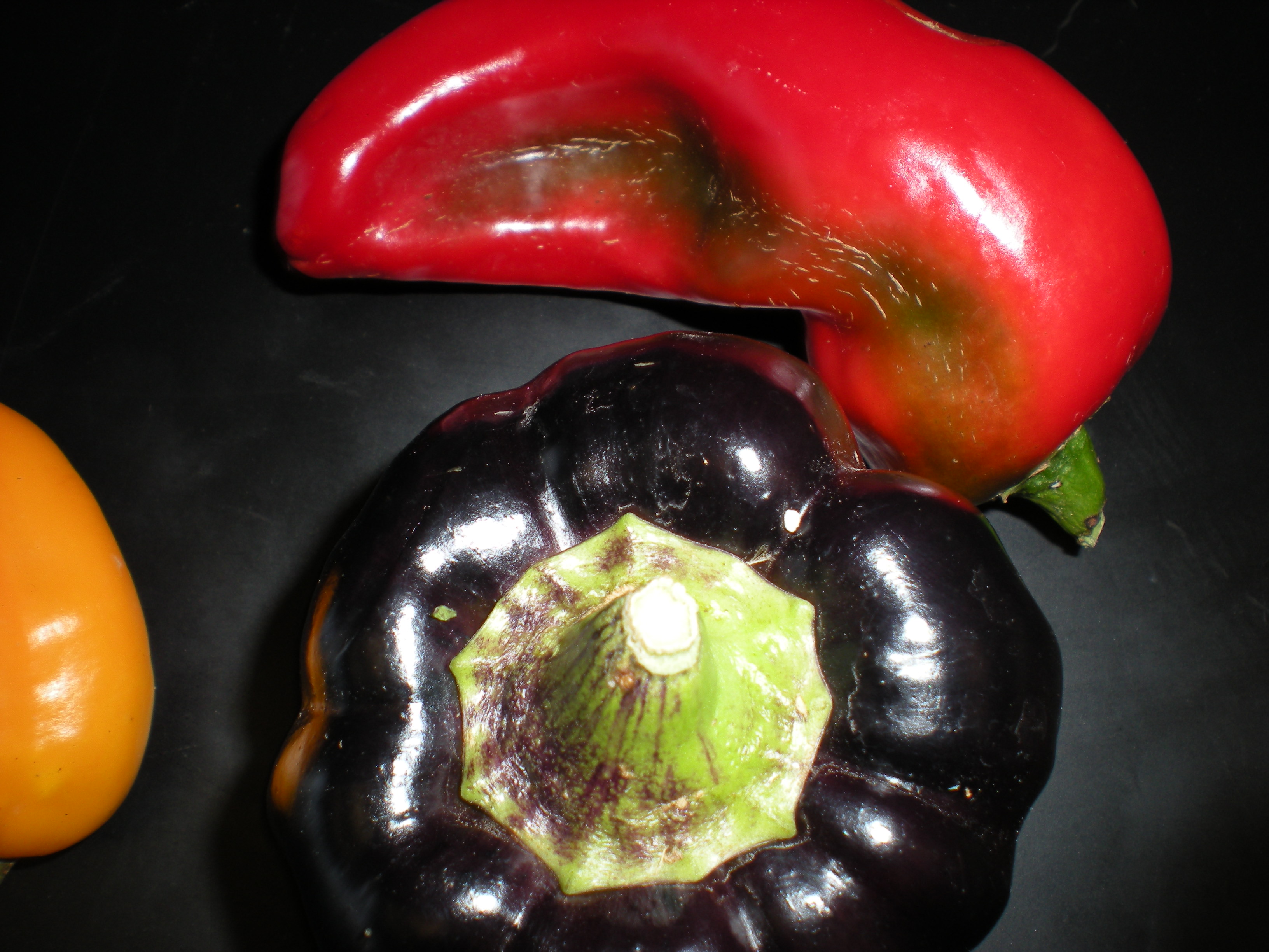 Look down into the hollow pepper and notice that most bell peppers have three or four lobes. Notice also the soft and thin white sheets of tissue running lengthwise down the inside of the fruit. That is the placenta, and it carries some of the seeds.