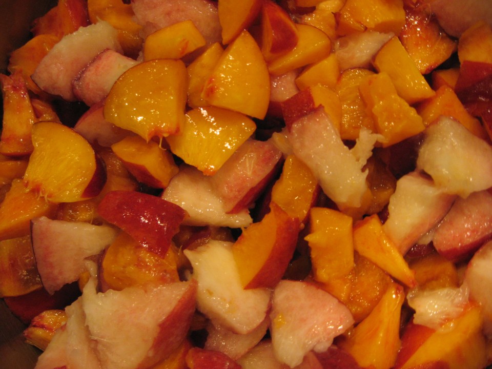 An assortment of chopped peaches